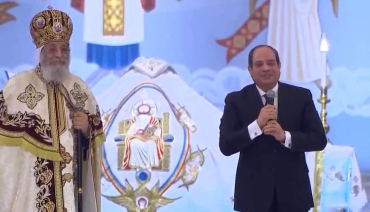الرئيس عبد الفتاح السيسي أثناء تقديم التهنئة للبابا تواضروس الثاني والمسيحيين المصريين بالعيد ،