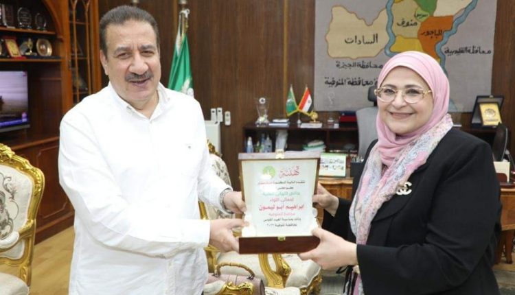 حيث قدمت الدكتورة هناء سرور خالص التهنئة إلى محافظ المنوفية والقيادات التنفيذية بالمحافظة و الشعب المنوفي العظيم بمناسبة العيد القومي للمحافظة ، كما قدمت درع تذكاري لمحافظ المنوفية تقديراً لمجهوداته المضنية والمتميزة في تنفيذ العديد من مشروعات البنية التحتية والاستثمارية بكافة القطاعات الخدمية والتنموية ، وذلك في إطار خطة الدولة الشاملة للوصول لأعلى معدلات إنجاز للارتقاء بمستوى الخدمات المقدمة للمواطنين .