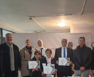 الأستاذة مي وفيق والمهندس محمد حسنين النجار والأستاذ زياد علي المراقب الرياضي.