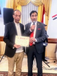 وشهد الحفل أيضًا تكريم الأستاذ الوطني سامي أبو ضيف وعدد من الشخصيات العراقية، وهم الأستاذ علي البرزنجي والأستاذ رائد الجبار، تقديرًا لمساهمتهم في العمل التطوعي لدعم أنشطة النادي، في لفتة تعكس روح الوحدة والتلاحم العربي. كما أهدت السيدة فايزة صلاح تورتة مزينة برسم ملحمة النصر، في لفتة مميزة للاحتفالية الرائعة.