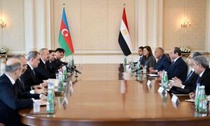 “المباحثات الموسعة لوفدي البلدين (مصر _ أذربيجان) بقصر الرئاسة في اذربيجان برئاسة الرئيس عبد الفتاح السيسي والرئيس إلهام علييف”.