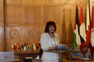 و تقدمت بالشكر لدولة رئيس مجلس الوزراء الدكتور مصطفى مدبولى والسفير أحمد أبو الغيط الأمين العام لجامعة الدول العربية لرعايتهم المؤتمر وجميع الوزارات والشركاء الاستراتيجين للمؤتمر.