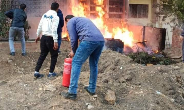 وتبين ان الحريق شب في مخلفات ملاصقه لمبني المدينة الجامعية للطالبات المكون من ارضى وخمسه طوابق بدون اي اصابات أو خسائر في الأرواح ، تم تحرير محضر وجارٍ العرض علي النيابة للتحقيق .