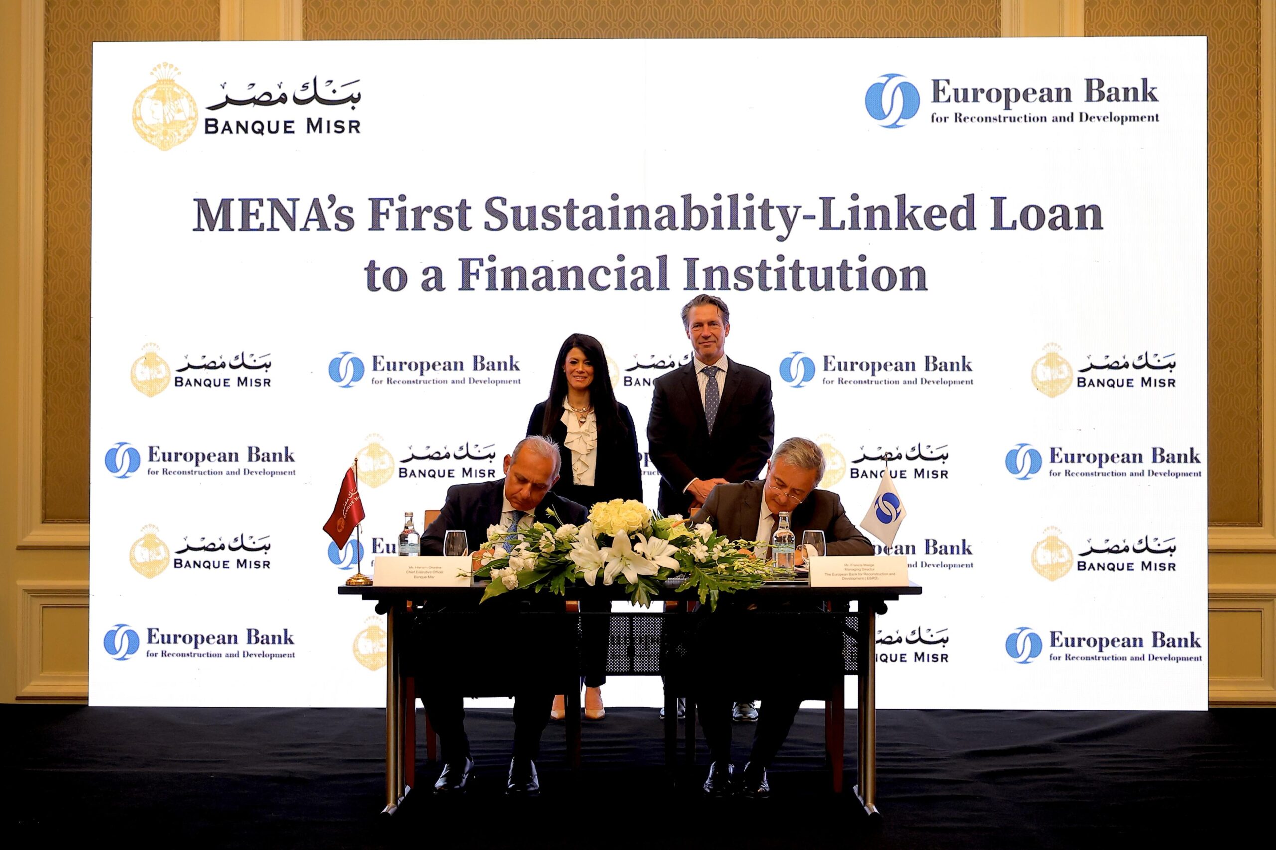 شهدت الدكتورة / رانيا المشاط وزيرة التخطيط والتنمية الاقتصادية والتعاون الدولي، قيام بنك مصر بالتوقيع على أول قرض من نوعه في منطقة الشرق الأوسط وشمال إفريقيا مرتبط بالاستدامة لمؤسسة مالية، وذلك بقرض تمويلي قدره 100 مليون دولار أمريكي، مقدم بالكامل من البنك الأوروبي لإعادة الإعمار والتنمية، وبمشاركة بنك أبو ظبي الأول كمستشار بيئي ومستشار الاستدامة للصفقة، ويأتي ذلك في إطار جهود بنك مصر المستمرة لتعزيز التنمية المستدامة في مصر، واتساقًا مع رؤية الدولة نحو اقتصاد شامل وأخضر، وقد تم التوقيع يوم الأربعاء الموافق 9 يوليو 2025، و قام بالتوقيع عن بنك مصر الأستاذ/ هشام عكاشه – الرئيس التنفيذي، والأستاذ / فرانسيس ماليج، المدير العام ورئيس مجموعة مؤسسات التمويل في البنك الأوروبي لإعادة الإعمار والتنمية، وذلك بحضور قيادات المؤسستين .