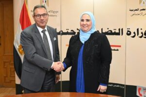 وقعت السيدة نيفين القباج وزيرة التضامن الاجتماعي والأستاذ محمد الإتربي رئيس مجلس إدارة بنك مصر بروتوكول تعاون بين بنك مصر ووزارة التضامن الاجتماعي لدعم مشروعات التمكين الاقتصادي للسيدات والشباب بقري المبادرة الرئاسية “حياة كريمة” في 6 محافظات، وذلك بقيمة 300 مليون جنيه لتوفير فرص عمل من خلال تنفيذ نحو 15,000 مشروع للأسر المستحقة، وقد حضر التوقيع الأستاذة / رامونا كنعان مستشار وزيرة التضامن الاجتماعي للتسويق المجتمعي، والدكتورة / فاطمة الجولي – رئيس قطاع اتصالات المؤسسة ببنك مصر، ولفيف من قيادات البنك والوزارة. ويأتي توقيع هذا البروتوكول في إطار حرص بنك مصر على استكمال دوره الرائد في مجال المسئولية المجتمعية، وذلك من خلال دعم تمويل المشروعات المتناهية الصغر لتمكين الأسر المستحقة بقرى «حياة كريمة» في 6 محافظات منتشرة بجمهورية مصر العربية وهي أسيوط – أسوان – بني سويف- الجيزة – الإسكندرية- الدقهلية.