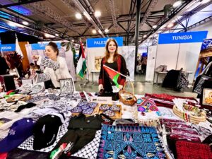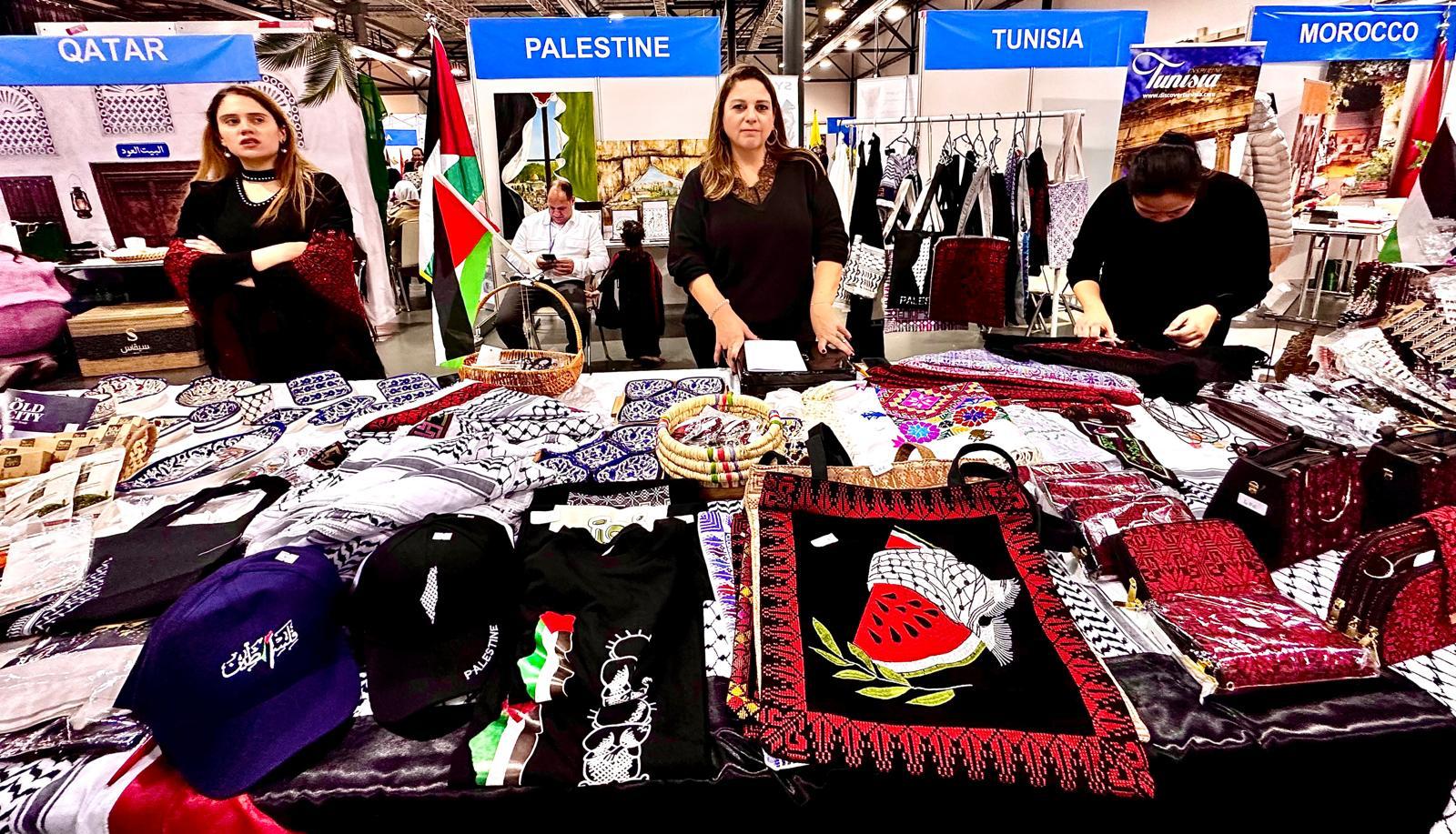في الجناح الفلسطيني، لم يكن العرض مجرد منتجات؛