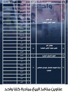 كما نسقت مع مسئولي عدد من السلاسل والكيانات التجارية والموردين، لإنشاء سرادق رئيسي بدائرة قسم شرطة مدينة نصر بالقاهرة، و11 سرادقا فرعيا بالميادين والشوارع الرئيسية أمام مقار بعض السلاسل والكيانات التجارية، لعرض وبيع منتجاتهم من السلع الغذائية وغير الغذائية، وبعض مستلزمات البيت المصري، خاصةً محلية الصنع، وذلك بأسعار مخفضة أقل من مثيلاتها بالأسواق وبنسب تخفيض تتراوح ما بين 25% إلى 60%.