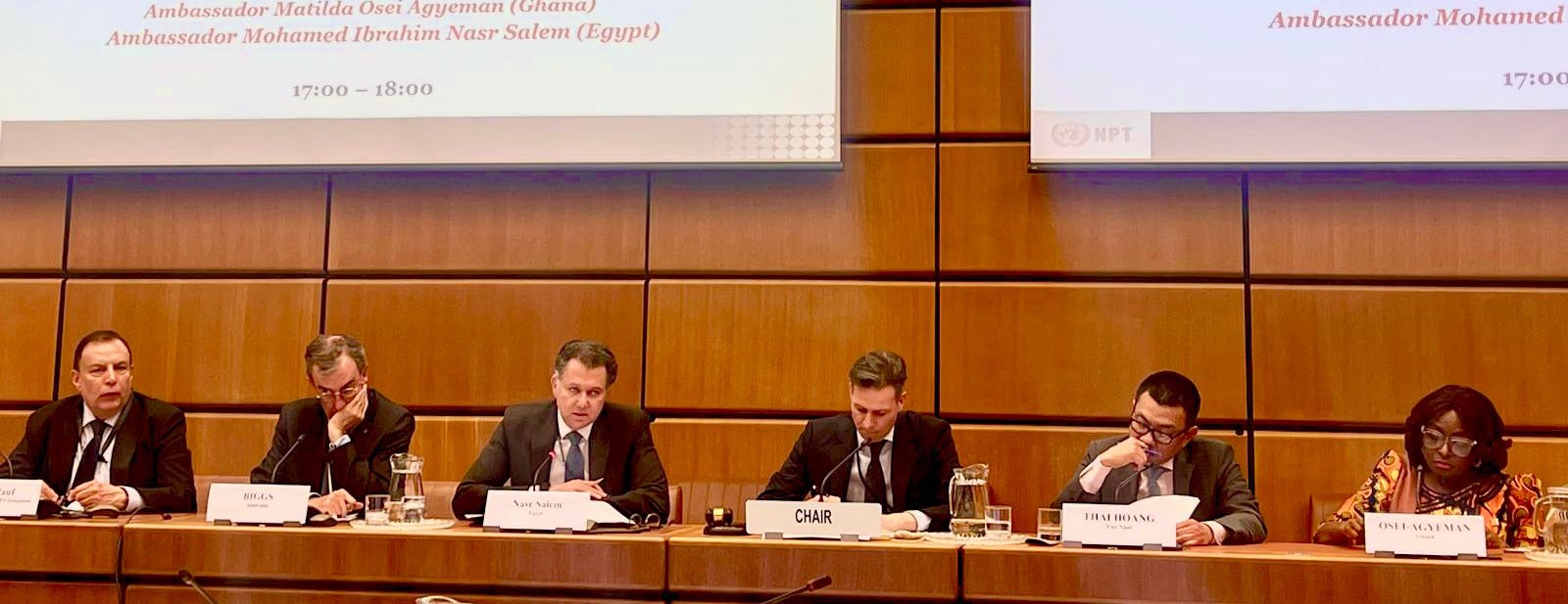 وشارك السفير نصر متحدثا رئيسيا في الجلسة الخاصة بالقضايا الإقليمية وتنفيذ قرار عام 1995 بشأن الشرق الأوسط، كما أسهم في الجلسة الختامية المخصصة لصياغة التوصيات واستخلاص النتائج المرتبطة بمسار مؤتمر المراجعة المرتقب، في تأكيد على الدور المصري النشط في دفع النقاشات متعددة الأطراف نحو مخرجات عملية.