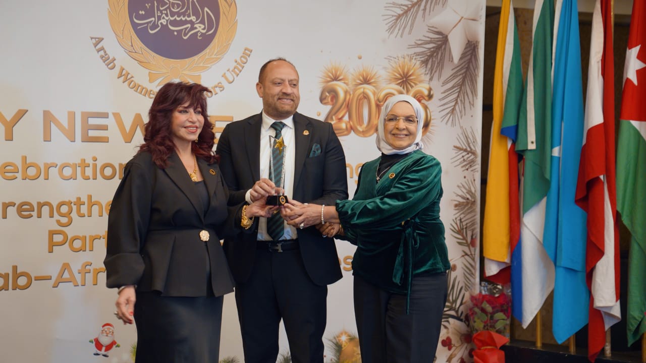 شهد احتفال اتحاد المستثمرات العرب برئاسة د. هدى يسى، بحصاد أعماله 2025 …تكريم ” المهندس على زين العابدين ” ، عضو مجلس الإدارة ورئيس لجنة الطاقة بالاتحاد ، عضو مجلس إدارة جمعية الصناع المصريون ، رئيس مجموعة الزين للتجارة والصناعة ، وذلك بمناسبة نجاحه الساحق برئاسة مجلس إدارة نادي الشباب المصري وفوزه بعضوية مجلس إدارة غرفة الصناعات الكيماوية باتحاد الصناعات المصرية.