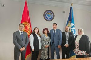 وحضر من وفد الاتحاد المهندس على زين العابدين.  والسيدة إلينا ماتييفا. وجاءت فى مقدمة اللقاءات الرسمية  ، لقاء  معالي الوزيرة دوغدوركول كينديرباييفا، وزيرة التعليم والعلوم بجمهورية قيرغيزستان، وتم بحث آليات التعاون المشترك   وقدمت   الوزيرة  خطة التعليم فى قيرغيزستان  ، و مايميز التعليم  الجامعى فى دولتها  بنهجه المتعدد التخصصات، وأسلوب الجامعة العملي في التعليم، وتركيزها على البحث العلمي والابتكار، بحيث  يكون لأعضاء هيئة التدريس والطلاب والخريجين دور فعّال في بناء مجتمع المعرفة العالمي، وتعزيزه ليكون مجتمعًا أكثر حيوية وشمولا.