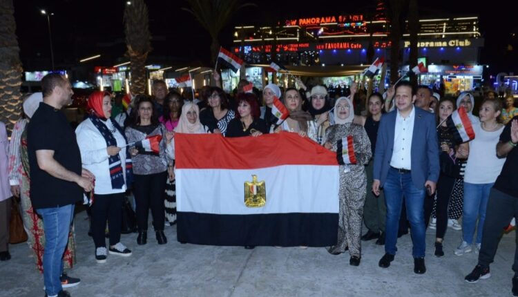 وبدأت المسيرة فى شارع السلام تجوب الشارع حاملة الإعلام والأغاني الوطنية وصولا إلى خليج نعمة الذى يقع عند ملتقى قارتي آسيا وأفريقيا، لتمتد المسيرة الداعمة للرئيس من كافة قوة الشعب على أرض الفيروز الغالية على قلوب المصريين جميعا .
