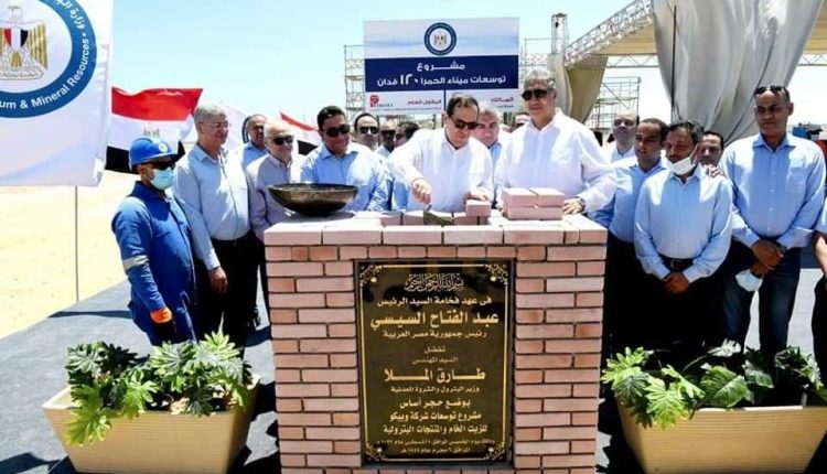 وضع المهندس طارق الملا وزير البترول والثروة المعدنيـة حـجـر الأسـاس لتوسعات منطقـة ميناء الحمـراء البترولى والمتمثلة في قطعـة الأرض الشاطئية علي مساحة ١٢٠ فـداناً بهـدف زيادة السعة التخزينيـة لتسهيلات الميناء بإضافة 4 مستودعات تخزين سعة 630 ألف برميـل خام لكل منها ، للوصـول لسعة تخزينية 3ر5 مليون برميـل لتسهيل حركـة تـداول واستقبال الزيت الخـام بمينـاء الحمـراء، بالإضـافة إلى قطعـة الأرض ٤٢٠ فـداناً المجـاورة لمنطقـة مينـاء الحـمـراء والـتـي سـيتم استغلالها كمنطقة لتـداول المنتجـات البتروليـة ومحطـة للشحن لخدمـة توسعات منطقة العلمين والمساهمة في تنميـةالمجتمع العمراني الجديد والظهير الصناعى والزراعى بمدينة العلمين.